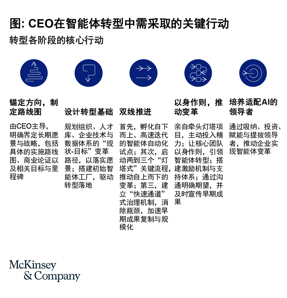 - 赋能全员,成为智能体领导者。随着智能体及智能体系统接管大量执行类工作,全员都需具备管理与监督智能体的能力。高管层尤其应以身作则,通过学习和自我迭代,引领组织重塑工作方式。
